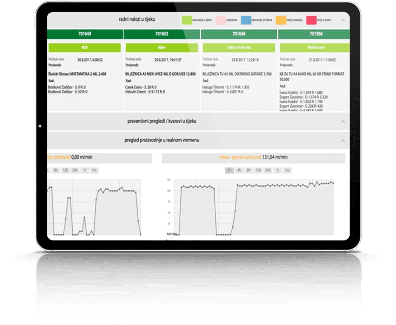 Das System ermöglicht die Auswertung der Produktivität von Maschinen und Produktionslinien sowie die Messung der Mitarbeiter¬effizienz in der Fertigung, sowohl auf Einzel- als auch auf Teamebene, über spezielle Produktionsarbeitsstationen.